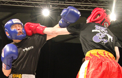 小学生~大人まで出場できるキックボクシングの大会。音響演出もあり熱い試合が展開されます。